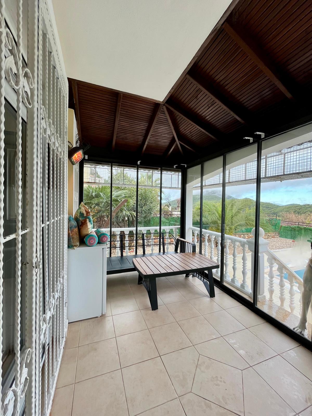 Enclosed balcony providing comfortable year-round use