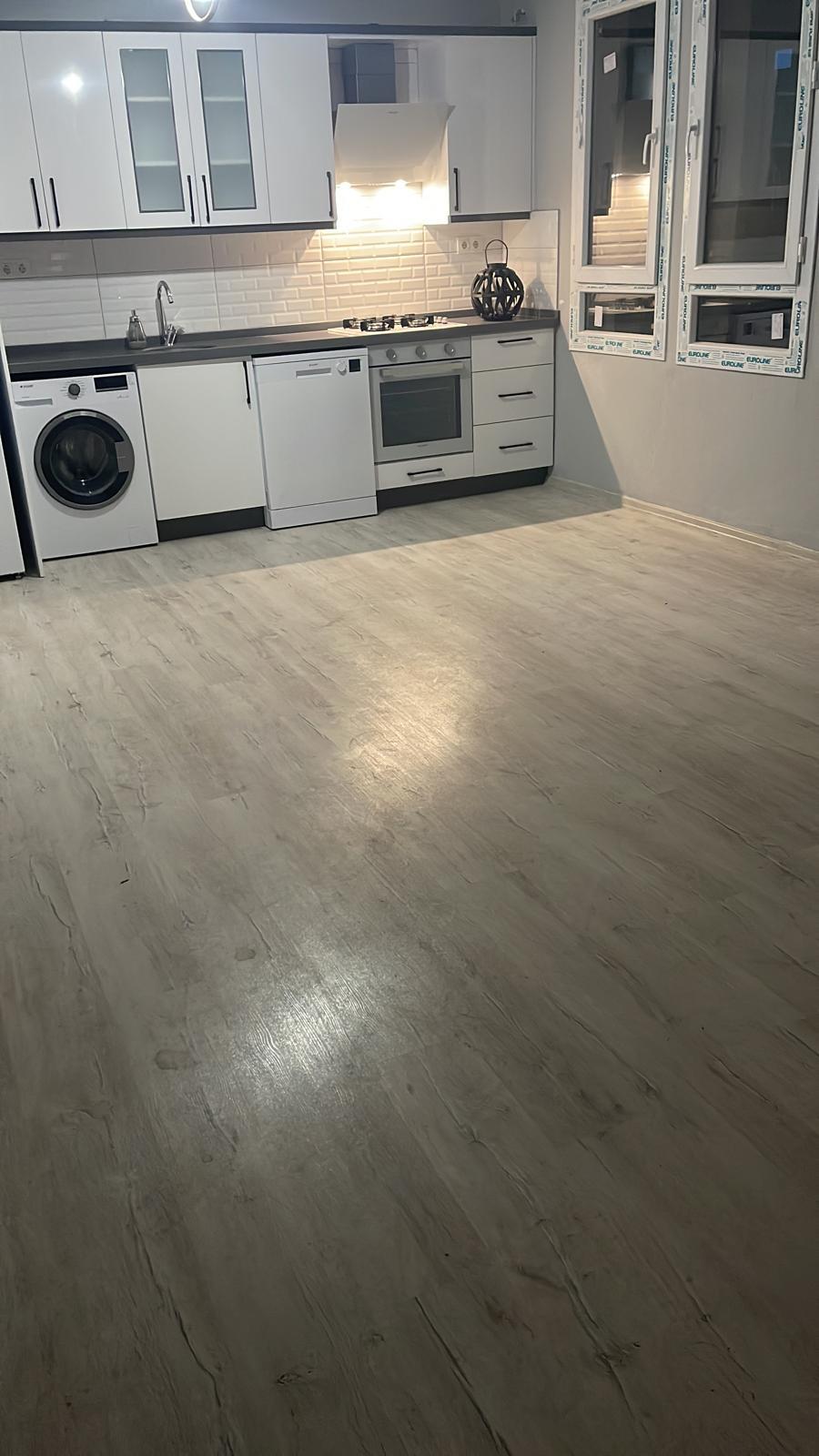 The apartment features a contemporary layout with a spacious open-plan living room and kitchen. Large windows fill the home with natural light, allowing you to enjoy the surrounding mountain landscape from the moment you step inside. The modern kitchen offers ample cabinetry and a sleek finish, perfect for everyday living.